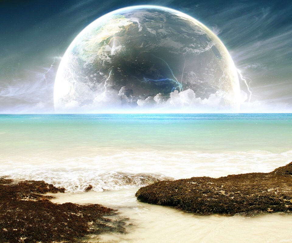 «Огромная луна над океаном»