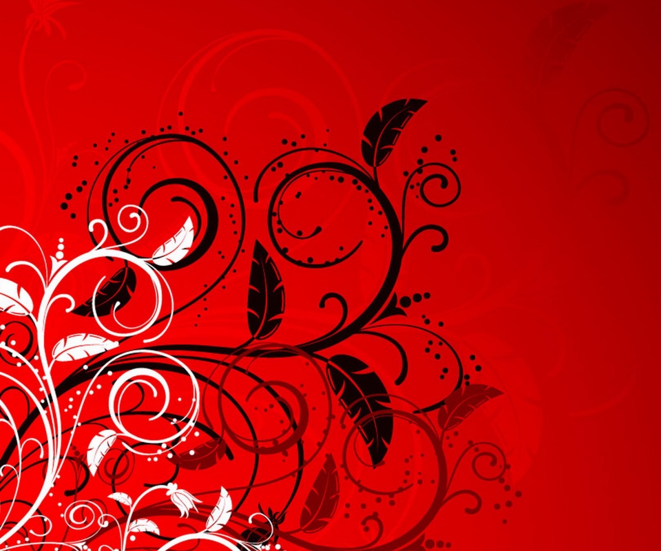 «Черно-белые листики на красном фоне»