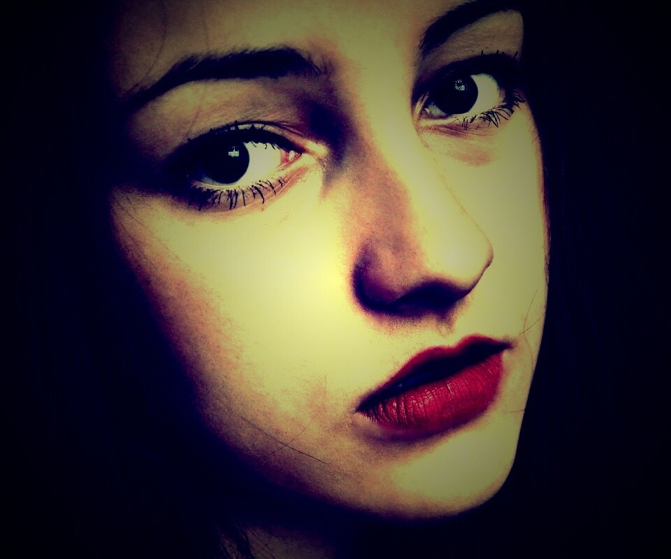 «Брюнетка с ярким макияжем и печальным лицом»
