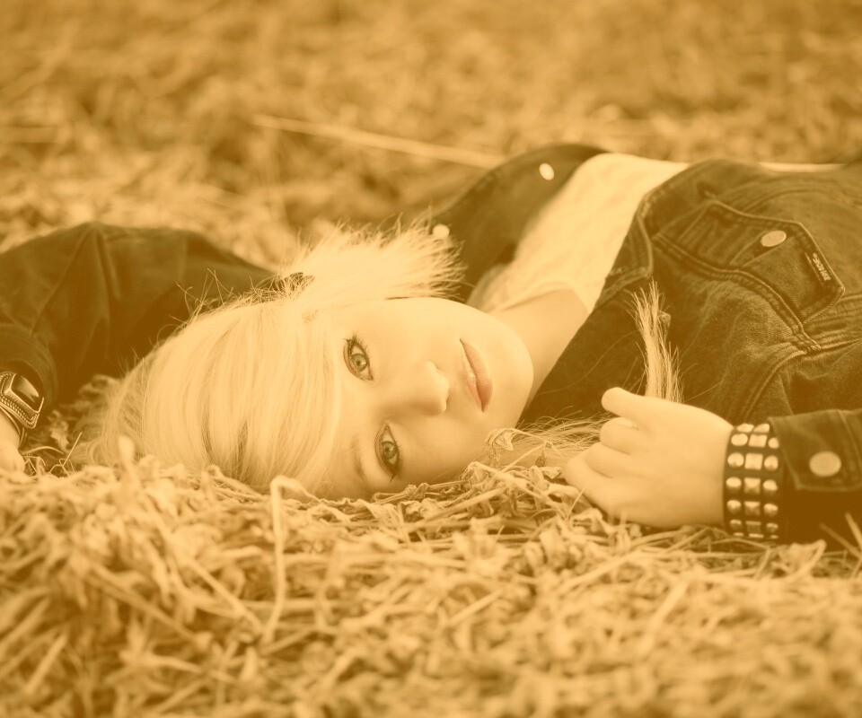 «Блондинка лежащая на траве»