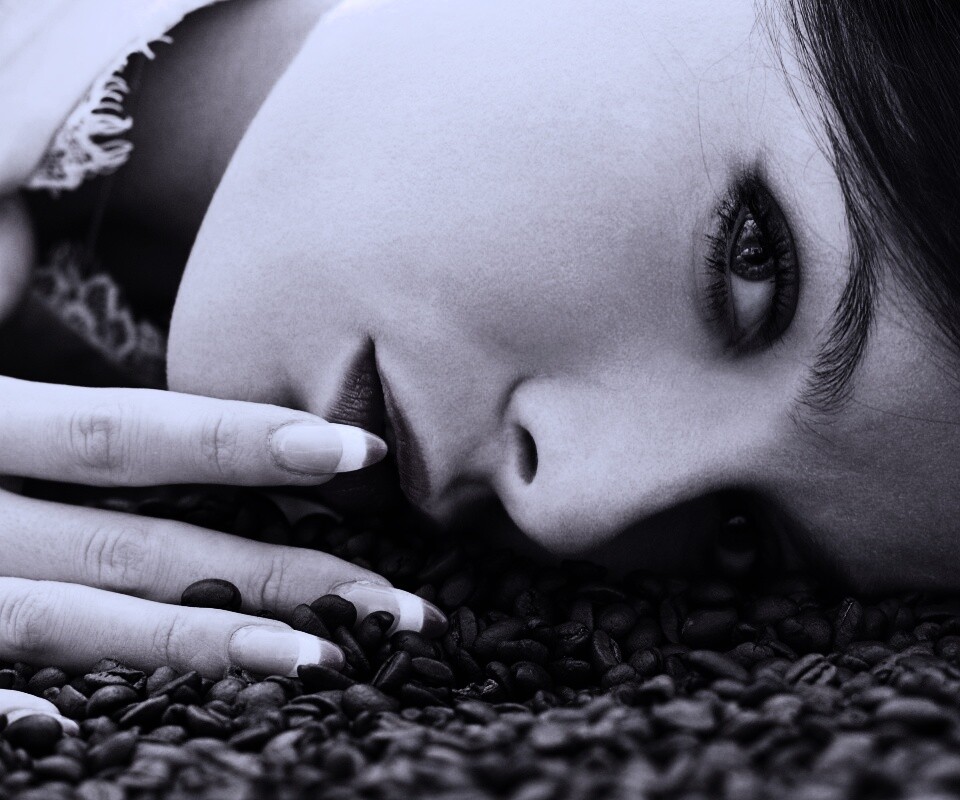 «Соблазнительная девушка с кофейными зернами»