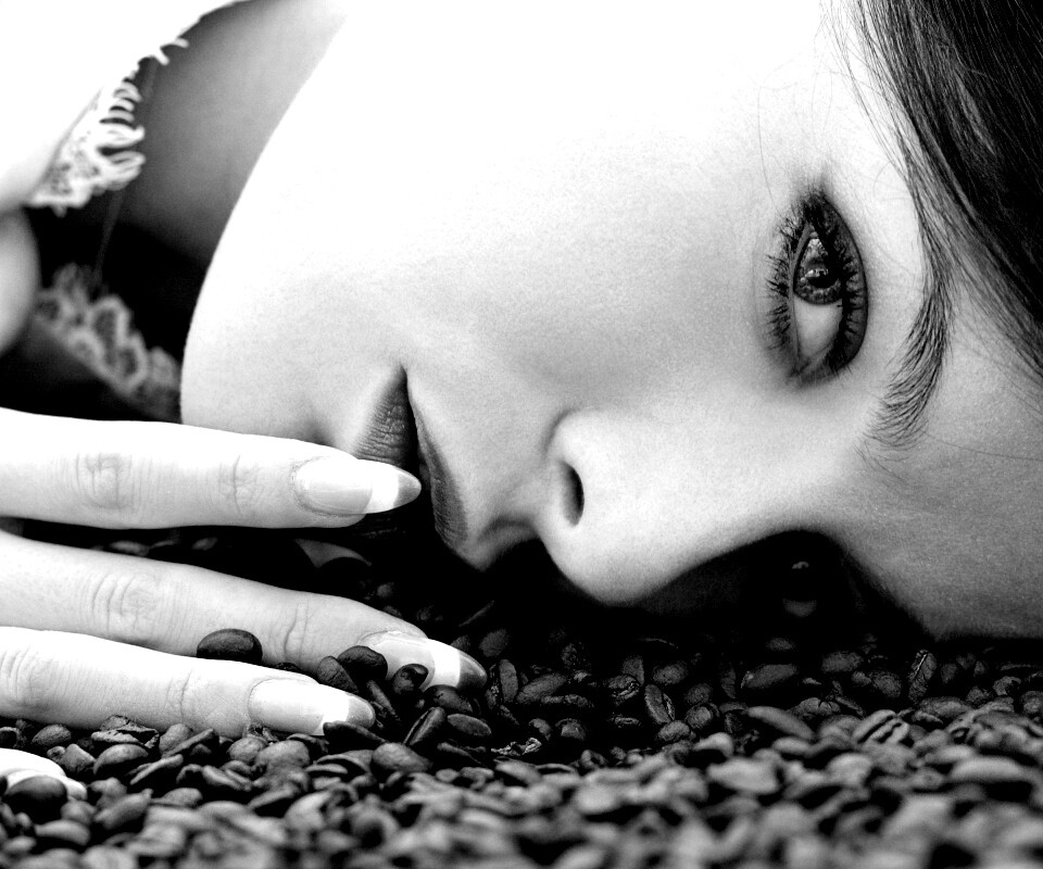 «Соблазнительная девушка с кофейными зернами»