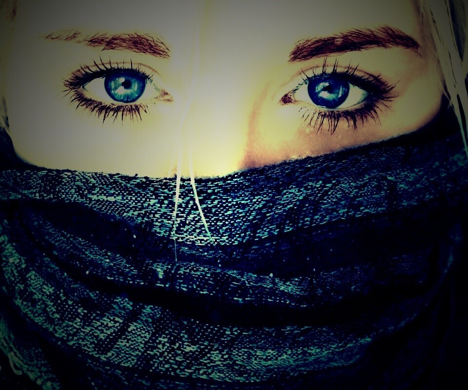 «Блондинка с шарфом на лице»