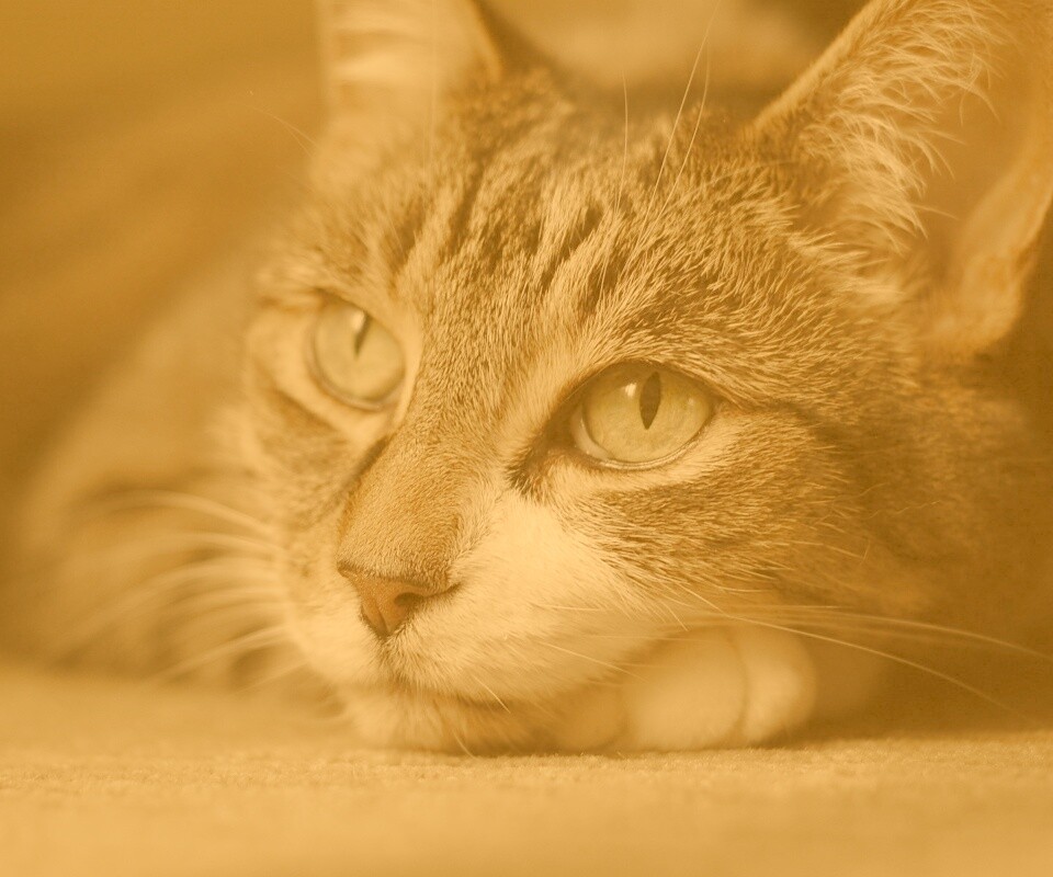 Обои для рабочего стола «Наблюдающая кошка» 960х800 с фильтром kelvin (оригинал 3008х2000)