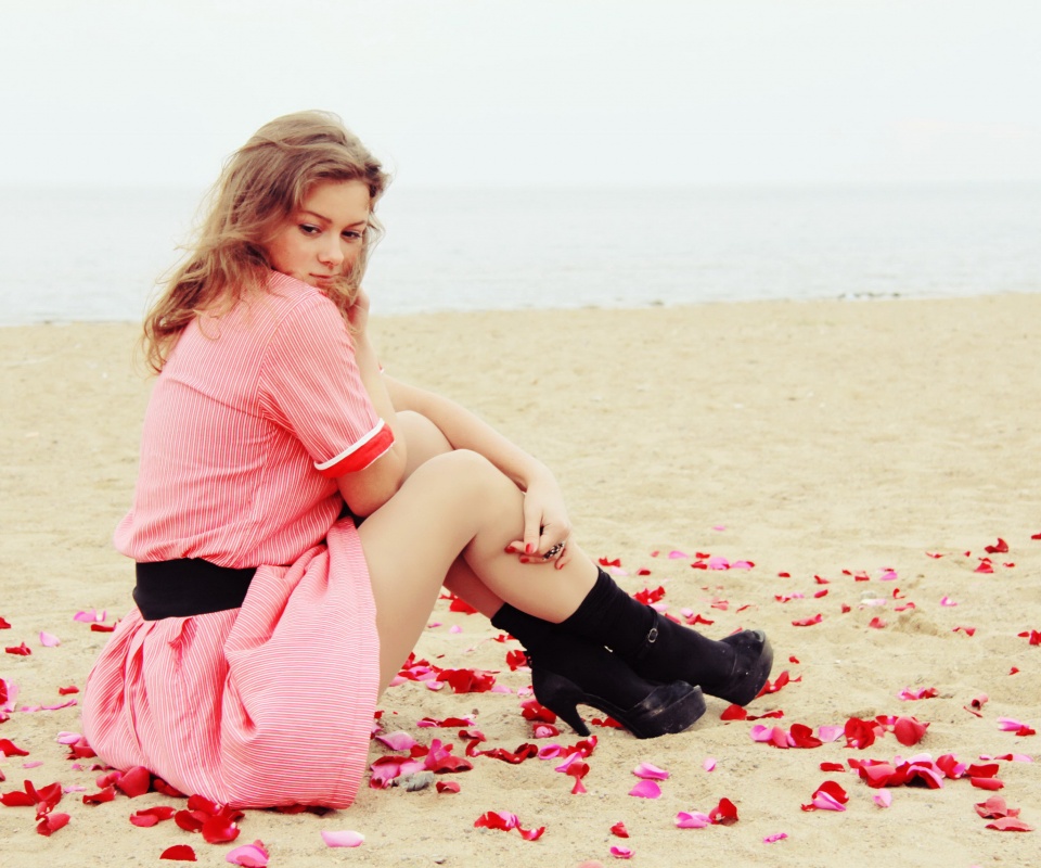 «Девушка среди лепестков на пляже»