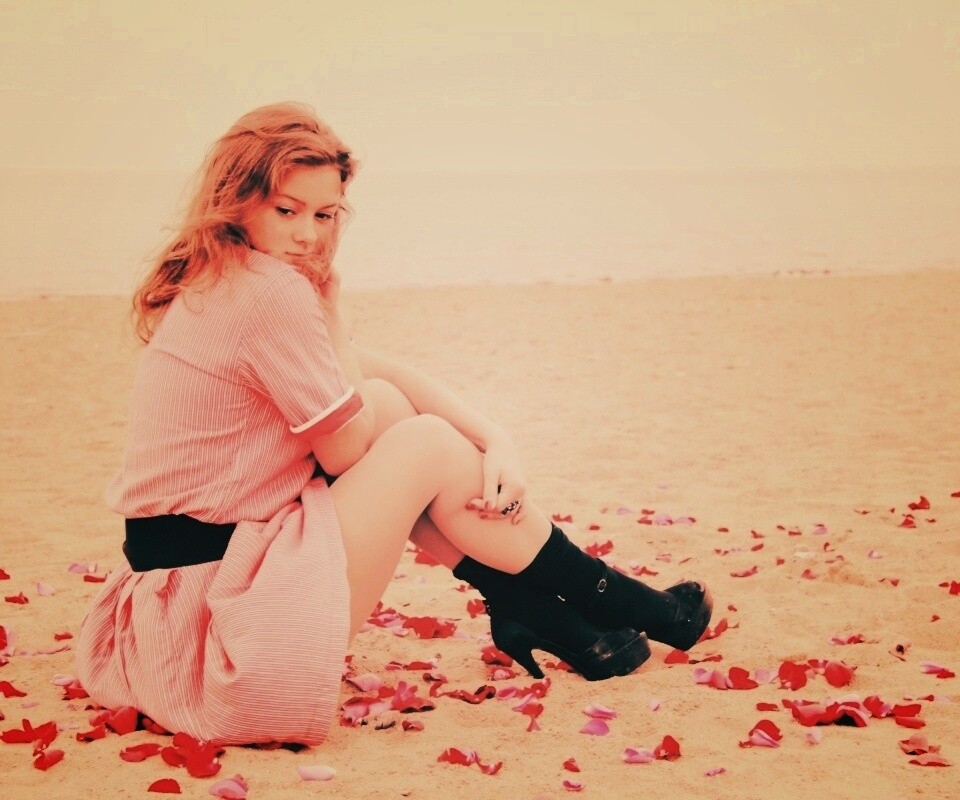 «Девушка среди лепестков на пляже»