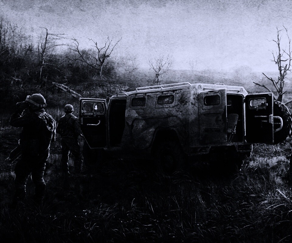 «Солдаты из сталкера на болоте»