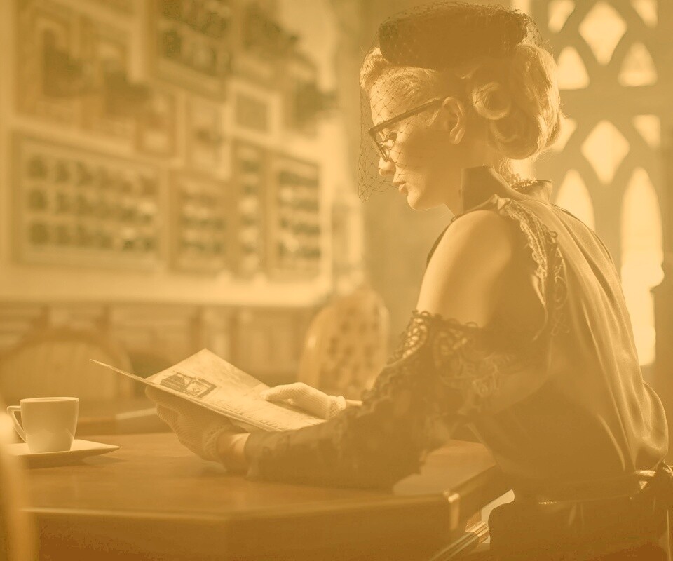 «Витажная девушка в кафе»