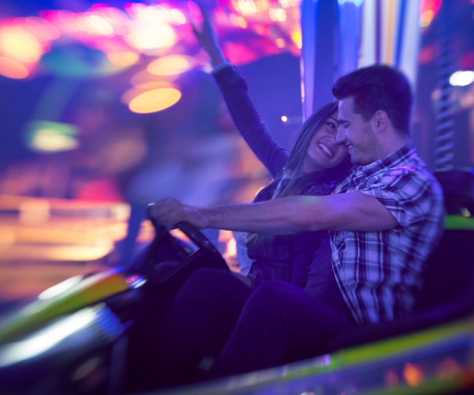 «Счастливая пара на аттракционах»