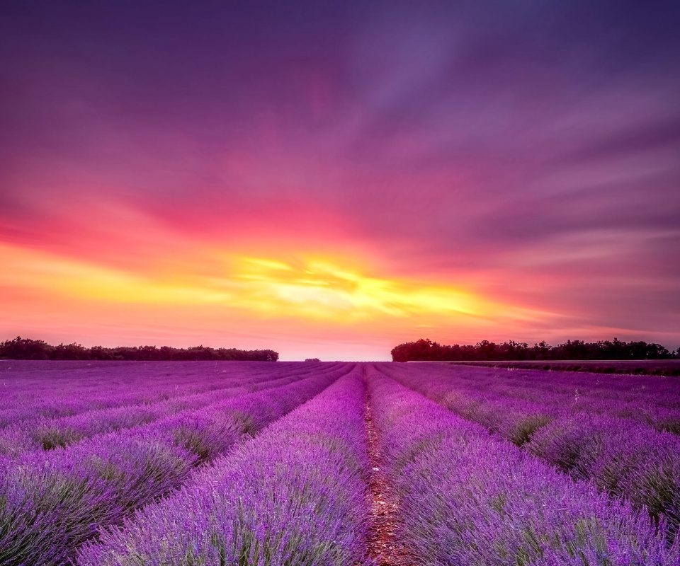 «Поле фиолетовых цветов на закате»