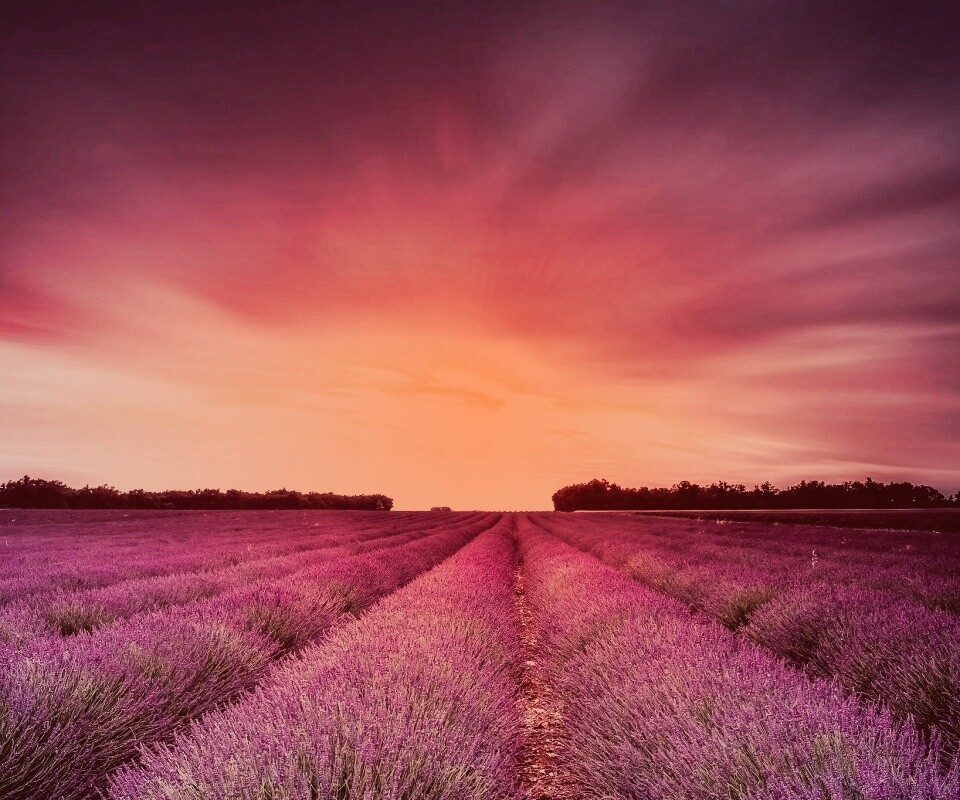 «Поле фиолетовых цветов на закате»