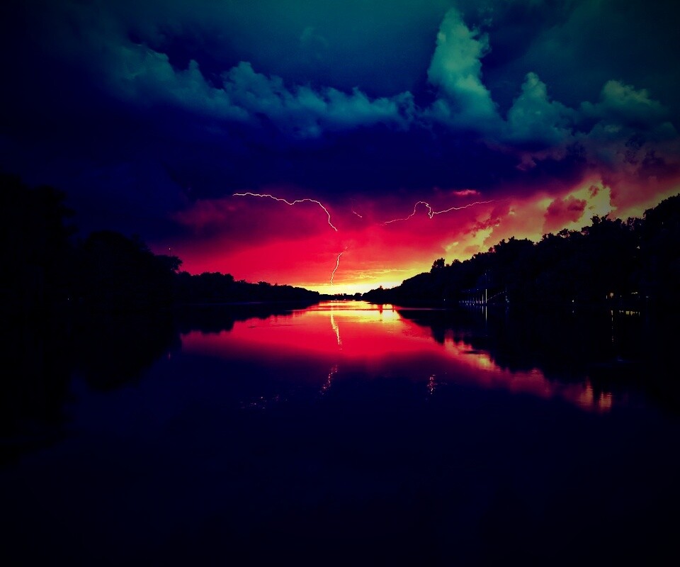 «Молнии на фоне заката, стандартные обои mac»