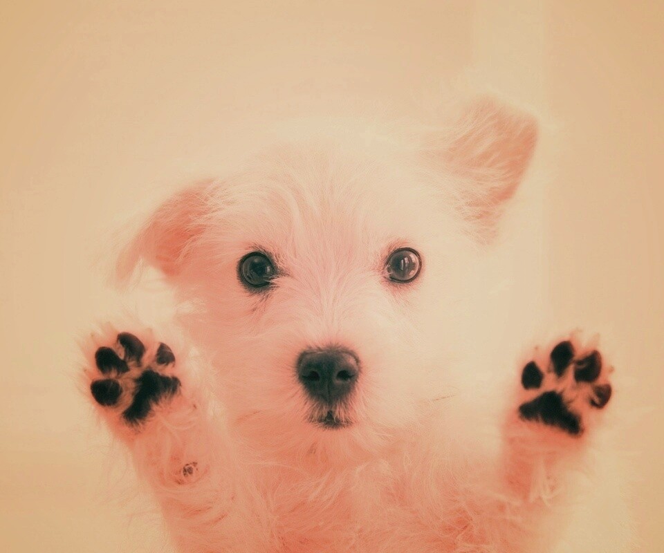 «Белый любознательный щенок»