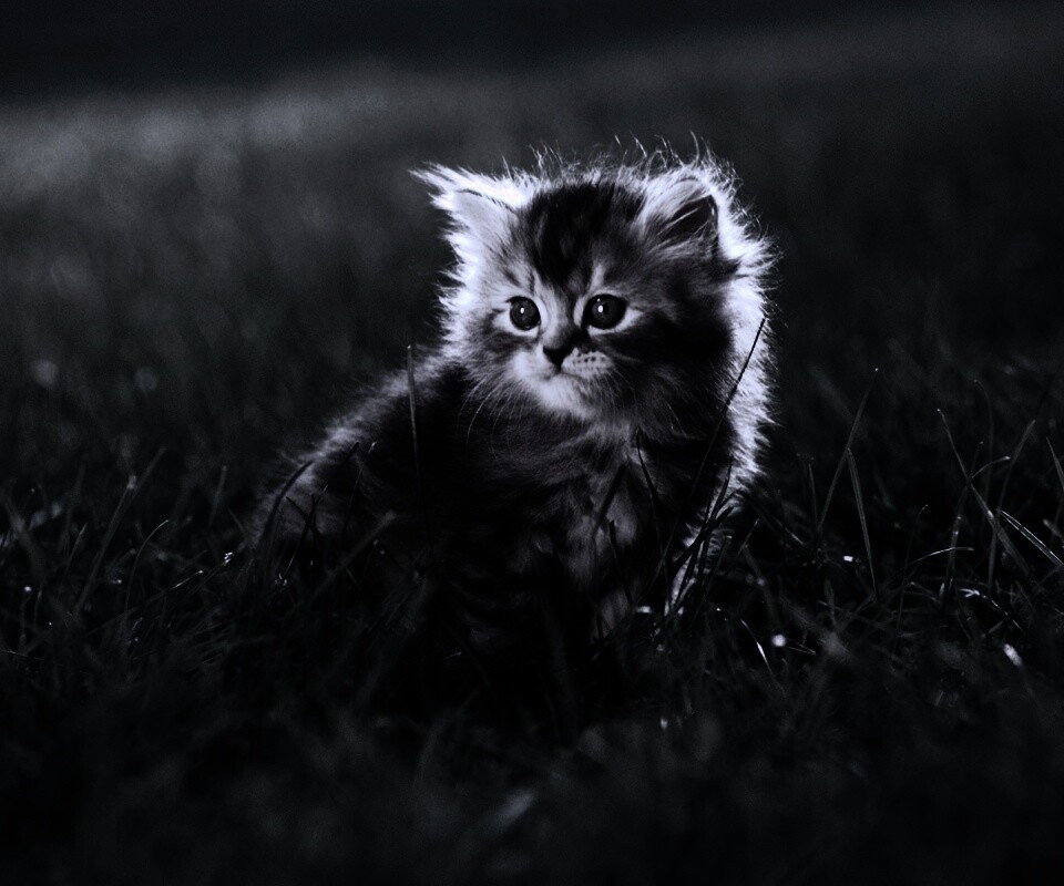 «Пушистый котенок в траве»