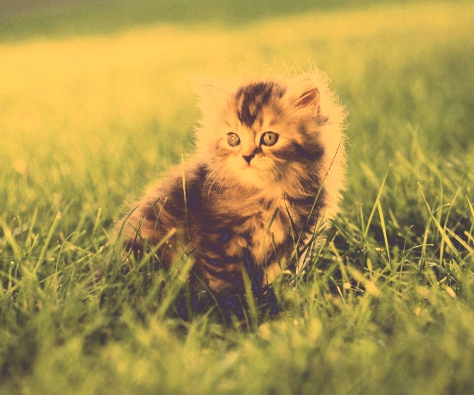 «Пушистый котенок в траве»