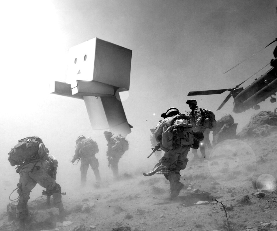 Обои для рабочего стола «Картонный человек среди солдат» 960х800 с фильтром inkwell (оригинал 1920х1200)