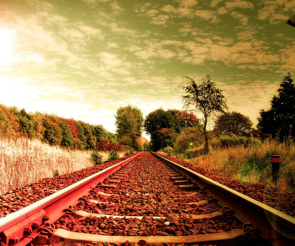 Обои для рабочего стола «Уходящие в даль рельсы» 960х800 с фильтром vibrance (оригинал 1920х1200)