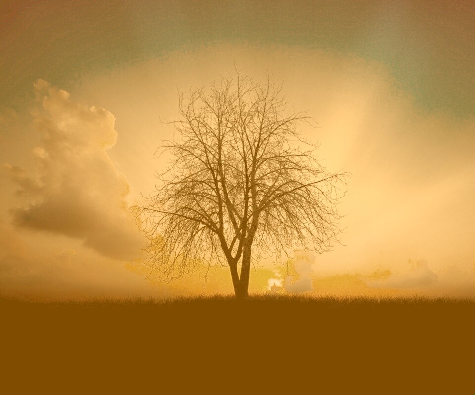 Обои для рабочего стола «Дерево на закате» 960х800 с фильтром kelvin (оригинал 1920х1080)