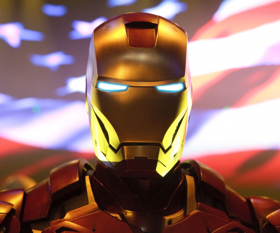 «Железный человек на фоне американского флага»