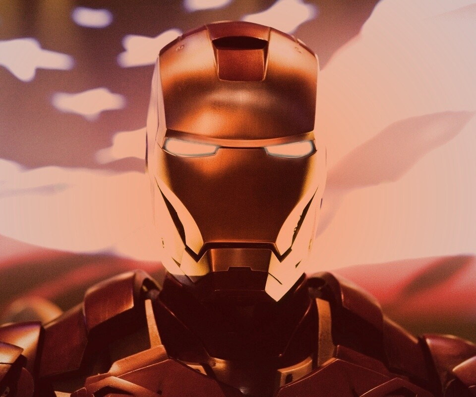 Обои для рабочего стола «Железный человек на фоне американского флага» 960х800 с фильтром toaster (оригинал 3999х2666)