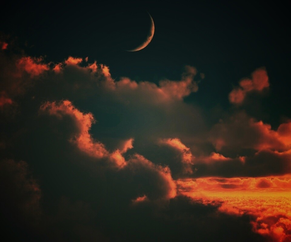 «Закат и месяц над облаками»