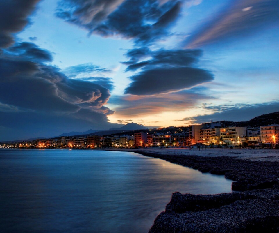 «Красивый закат над городом у моря»
