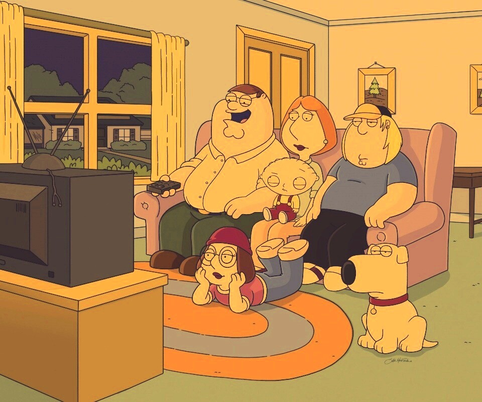«Гриффины всей семьей перед телевизором»