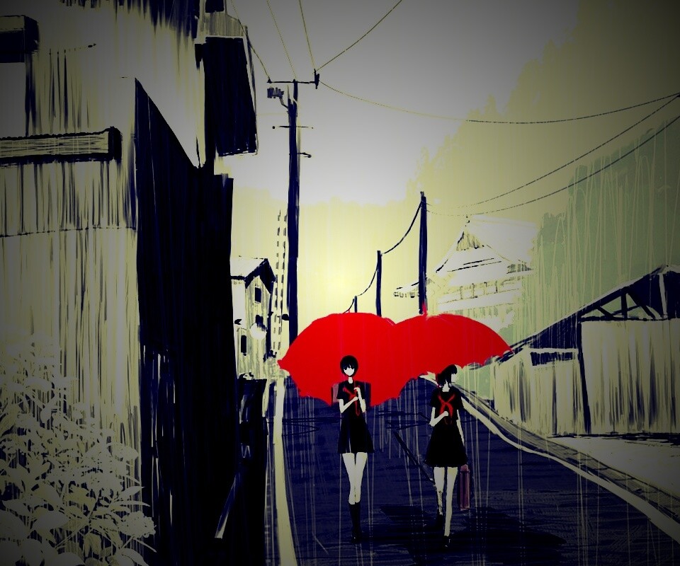 «Девушки с красными зонтами»