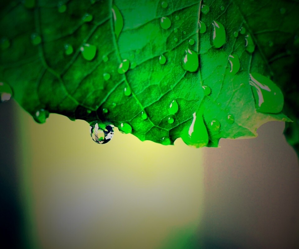 «Роса на листе в макро»