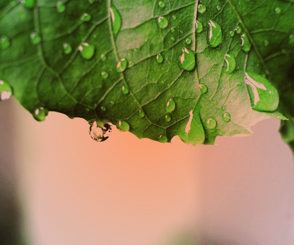 «Роса на листе в макро»