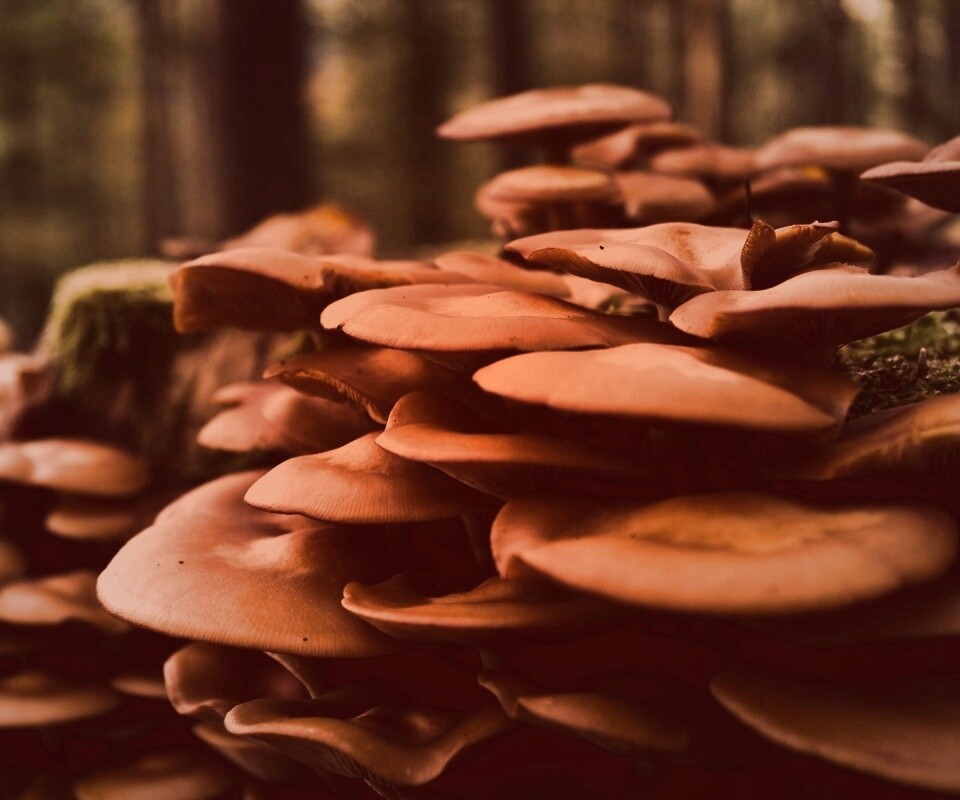 Обои для рабочего стола «Лесные грибы на пне» 960х800 с фильтром toaster (оригинал 1920х1200)