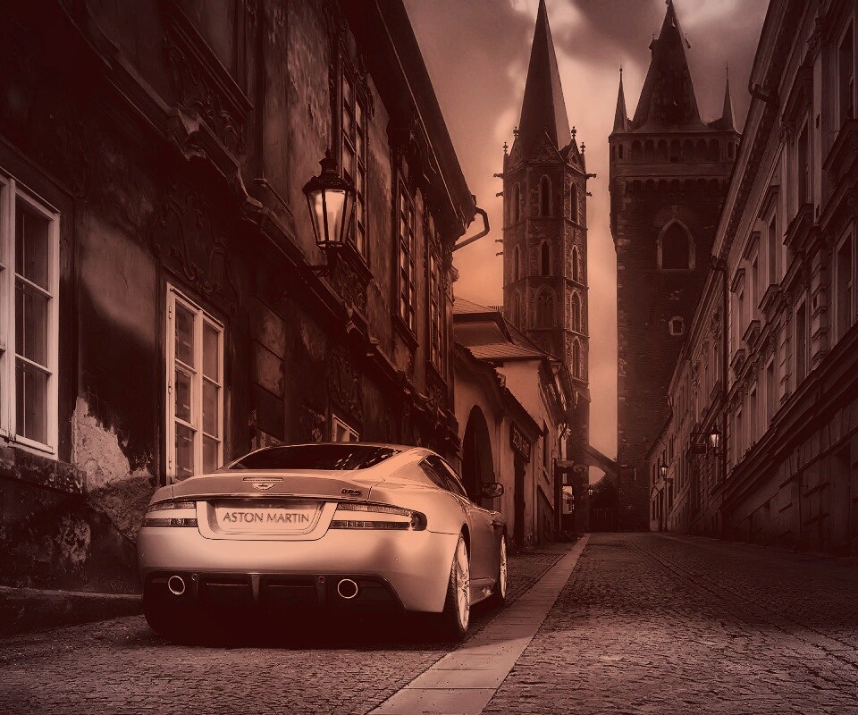 «Aston Martin в старинном городе»