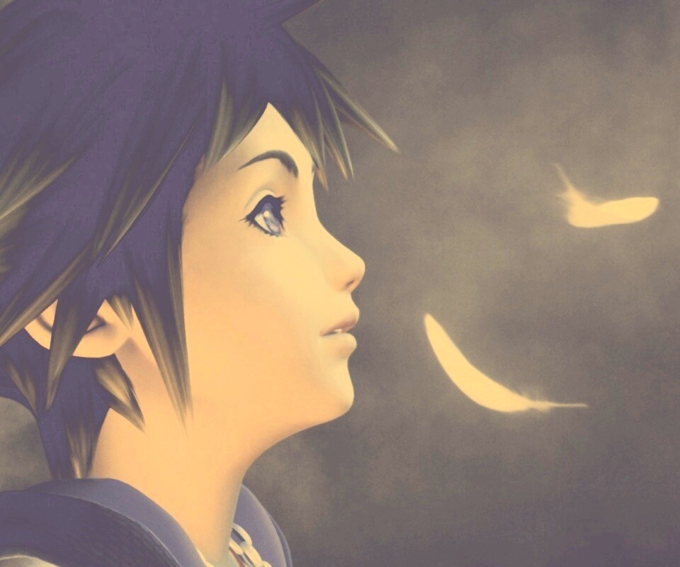 «Анимешный парень и белые перья»