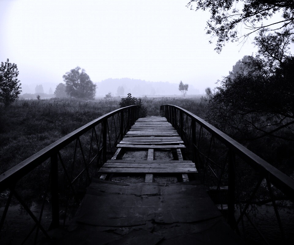 «Старый мост на черно-белом фото»