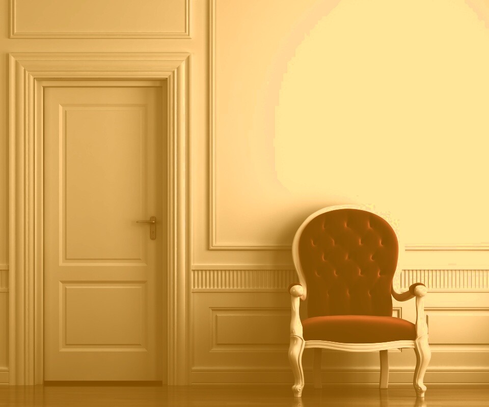 «красное кресло в белой комнате»