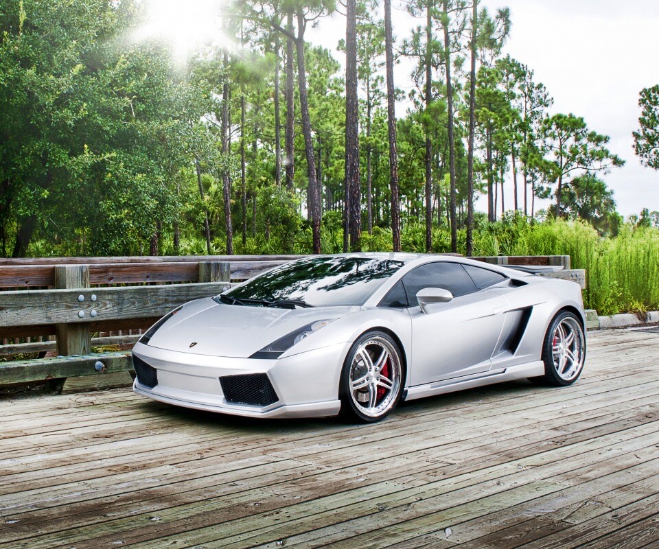 Обои для рабочего стола «Ламбоджини на мосту в лесу» 960х800 с фильтром vibrance (оригинал 4064х2540)
