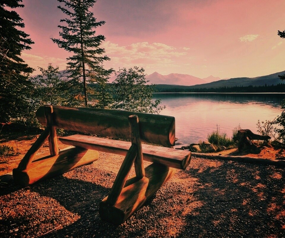 «Деревянная скамья на берегу озера»