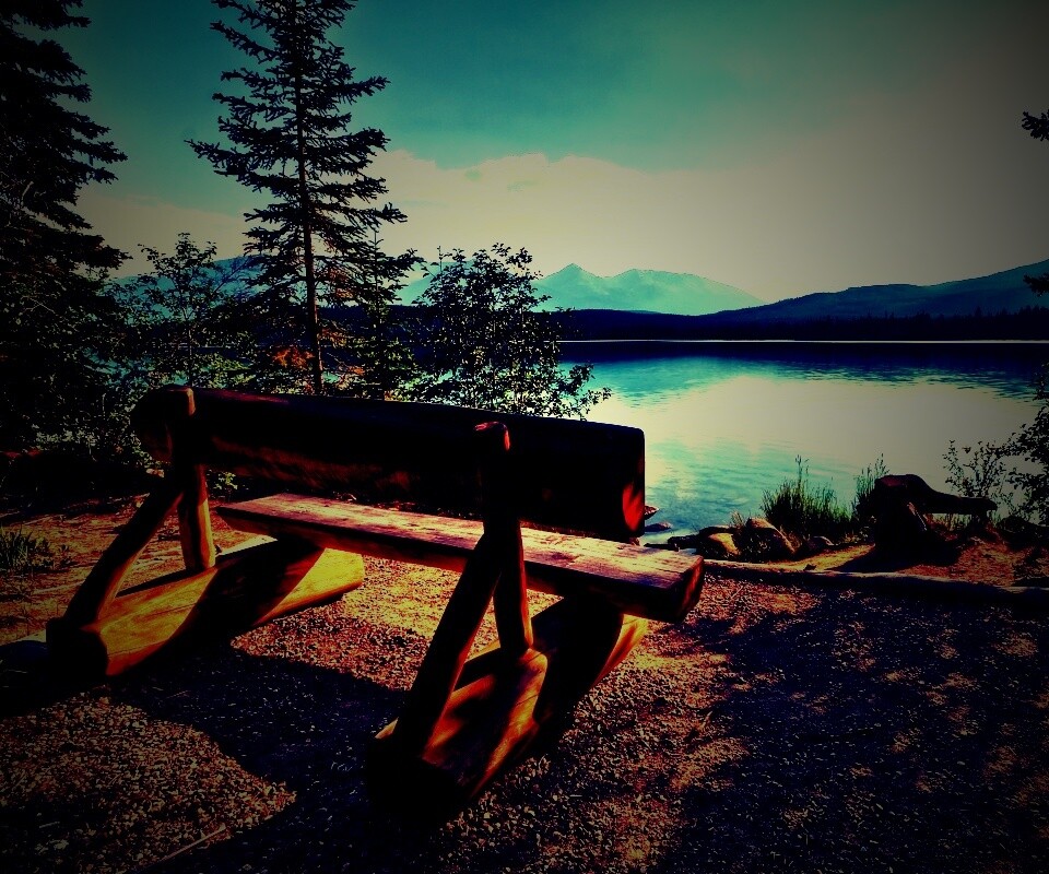«Деревянная скамья на берегу озера»