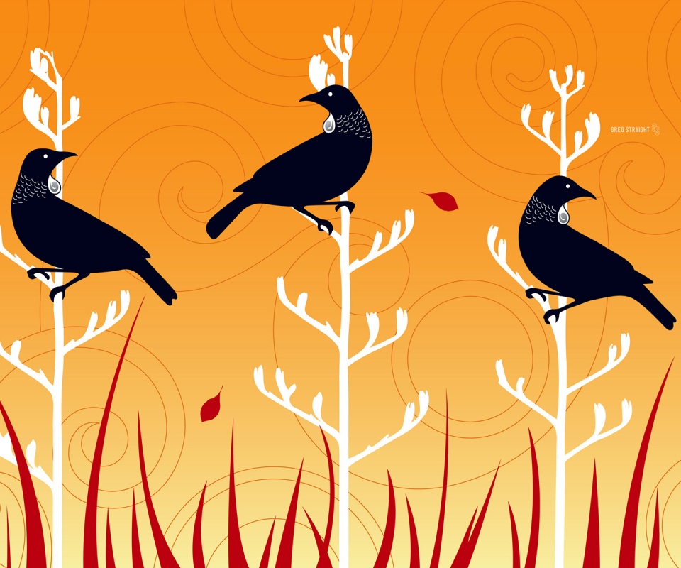 «Векторные стилизованные птицы на ветках дерева»