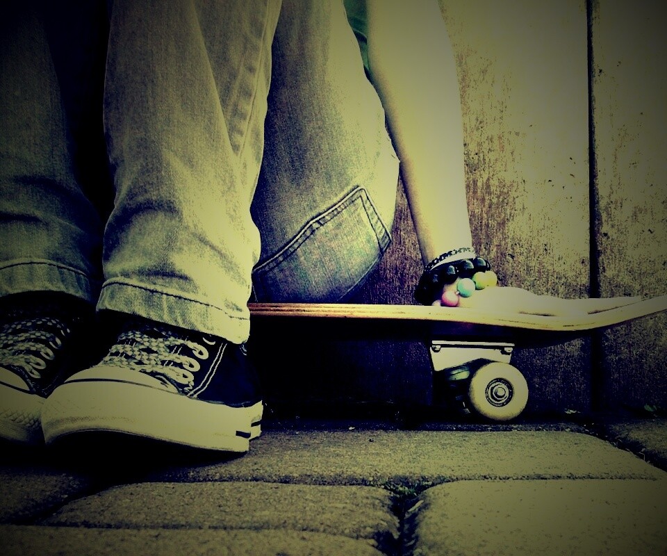 «Девушка сидящая на скейте»