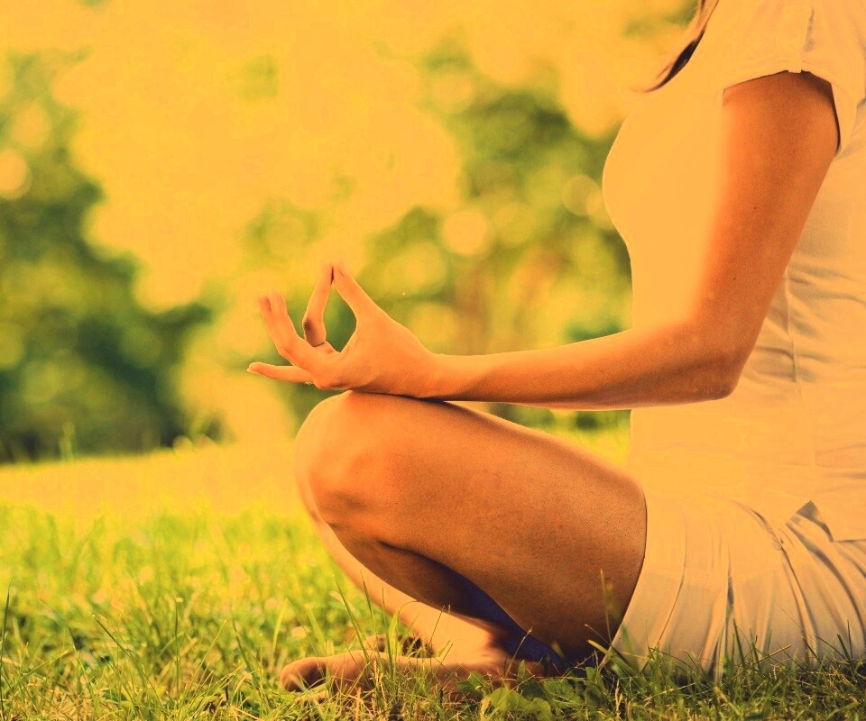«Девушка медитирует в позе лотоса на траве»