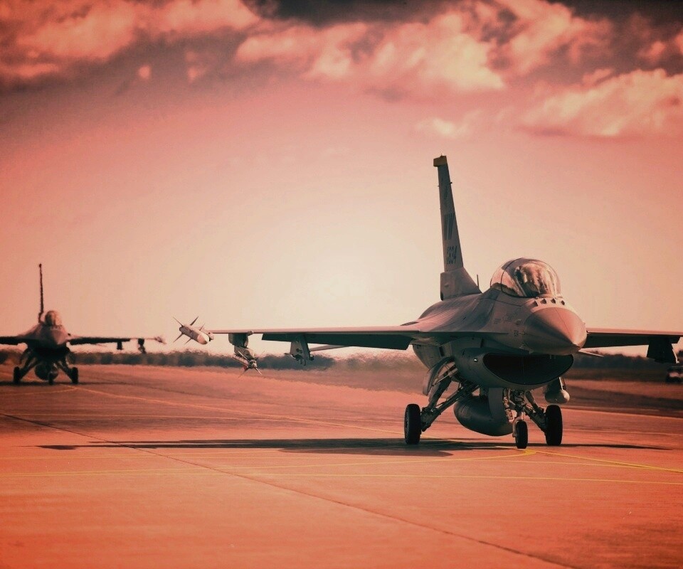 «Истребители f16 Falcon на взлетной полосе»