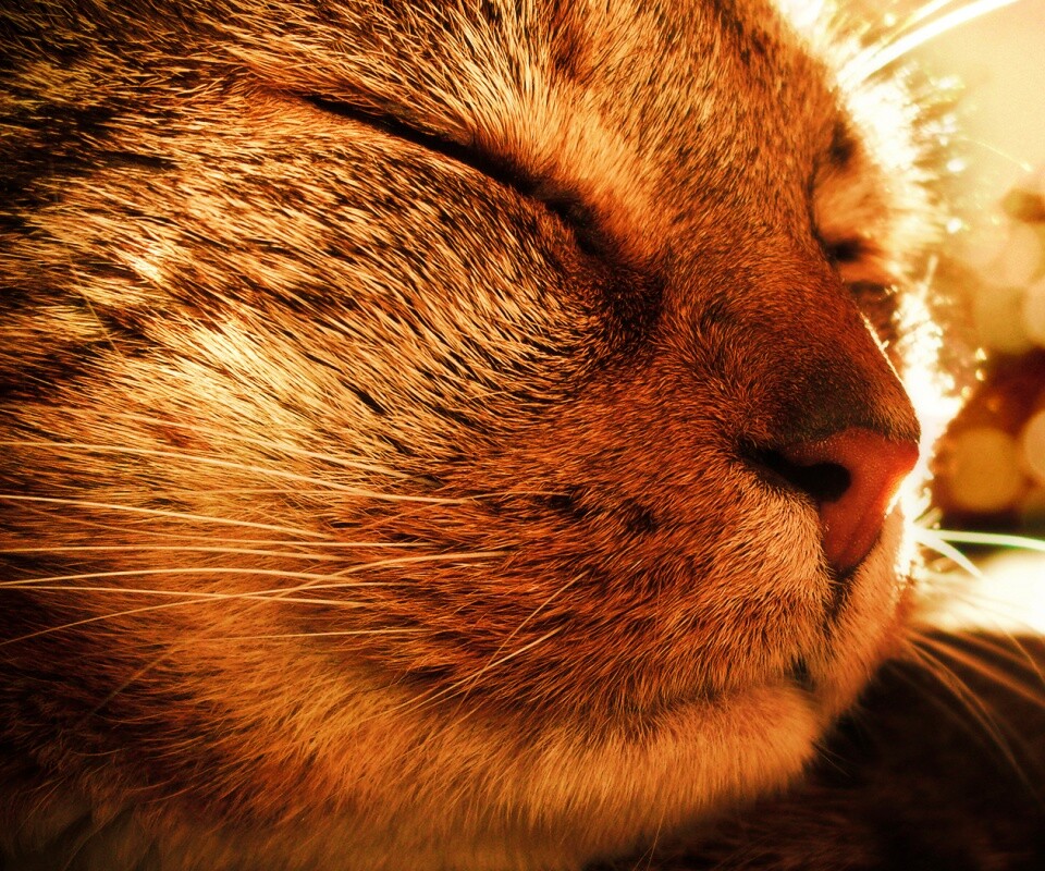 «Спящий на солнце рыжий кот»