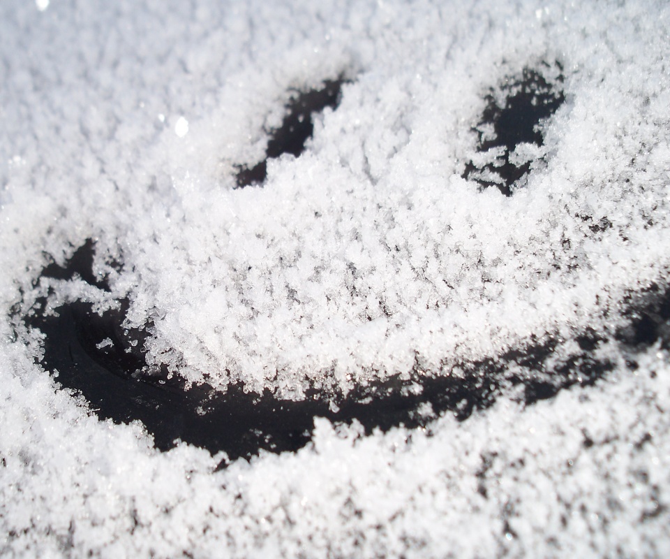 Обои для рабочего стола «Смайлик на заснеженном стекле» 960х800 (оригинал 2560х1600)