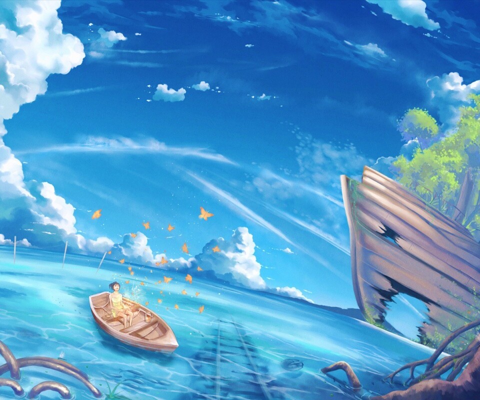 Обои для рабочего стола «В лодке» 960х800 с фильтром vibrance (оригинал 1273х998)