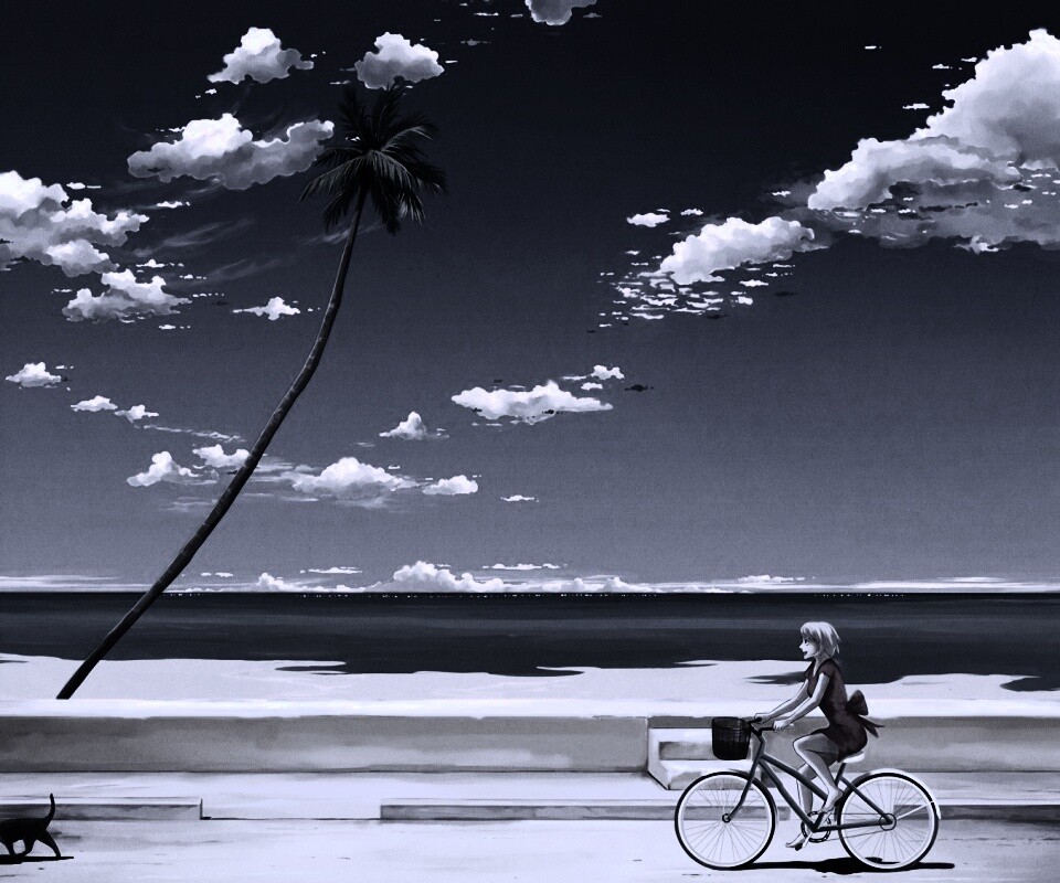 «Девушка едет на велосипеде вдоль берега»