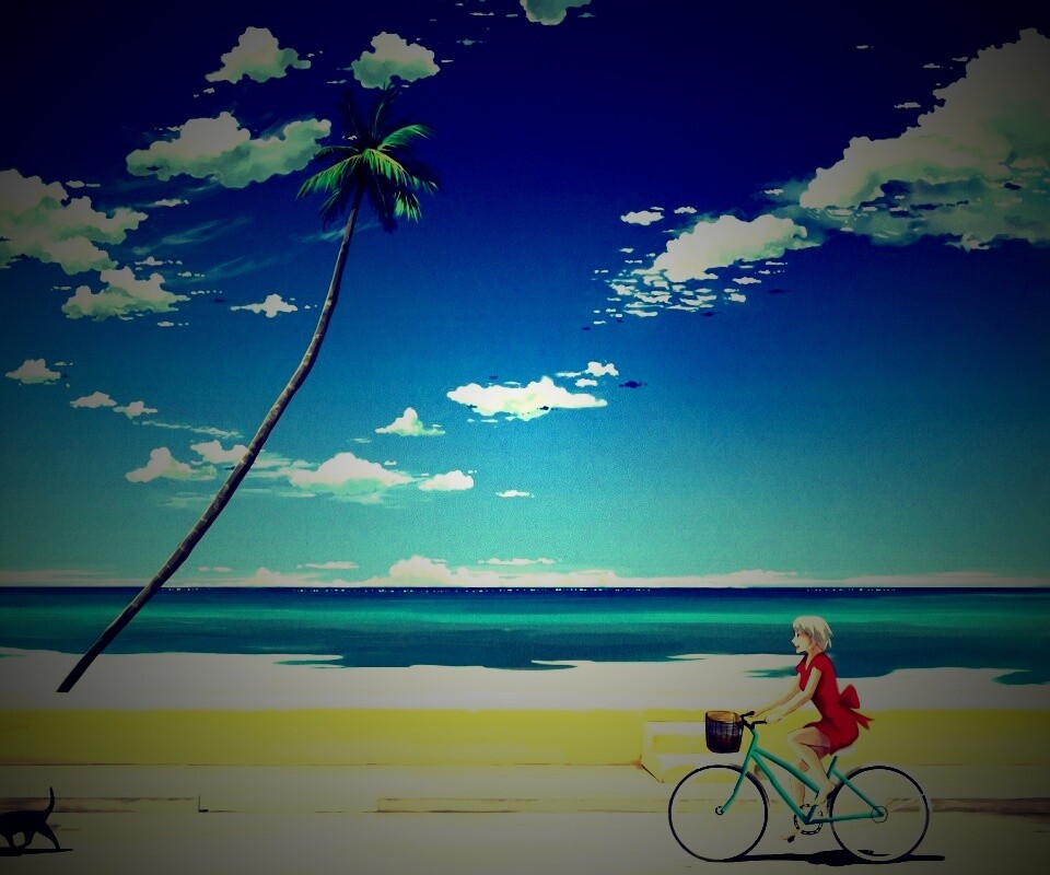 «Девушка едет на велосипеде вдоль берега»