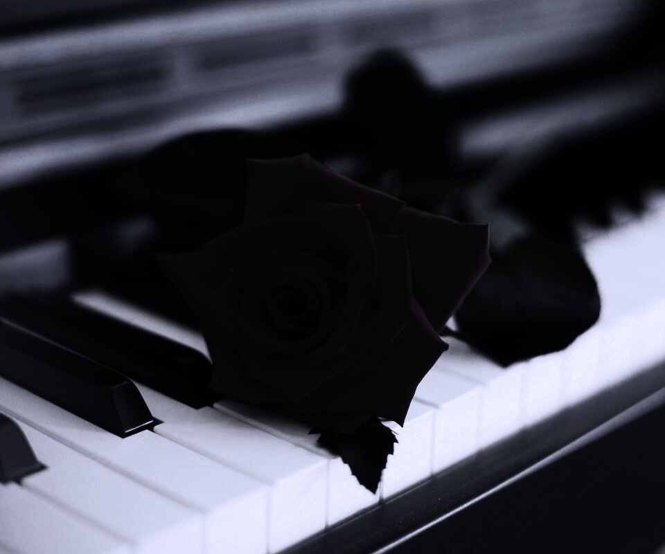 Обои для рабочего стола «Роза на клавишах пианино» 960х800 с фильтром gotham (оригинал 1920х1200)