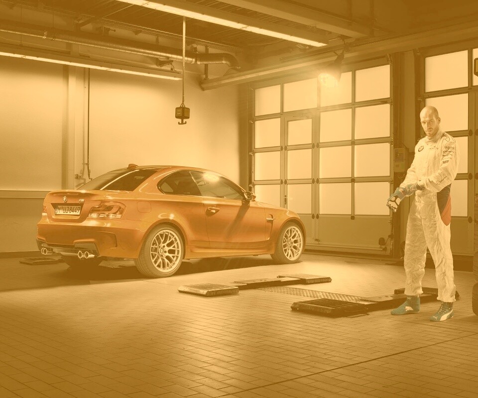 Обои для рабочего стола «Гонщик и BMW M1 в гараже» 960х800 с фильтром kelvin (оригинал 1920х1200)