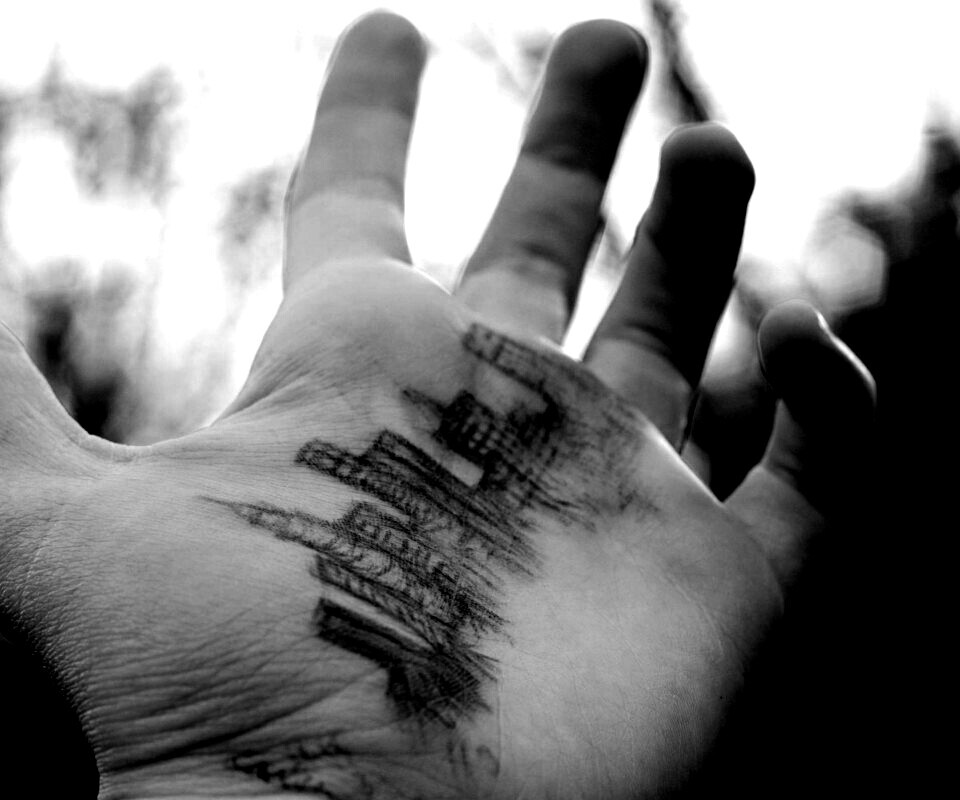 Обои для рабочего стола «Город на ладони» 960х800 с фильтром inkwell (оригинал 1920х1200)